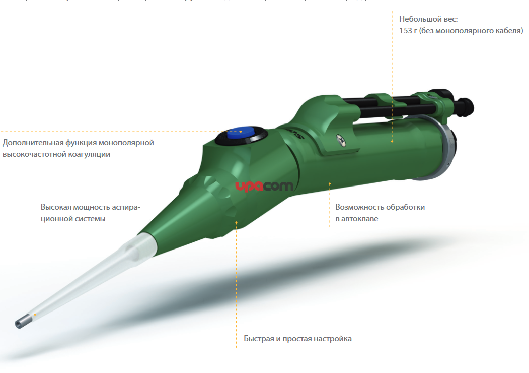 Ультразвуковые инструменты Macro с функцией ВЧ-коагуляции для селективной диссекции мягких тканей, с рабочей частотой 25 кГц, в комбинации с функцией монополярной высокочастотной коагуляции